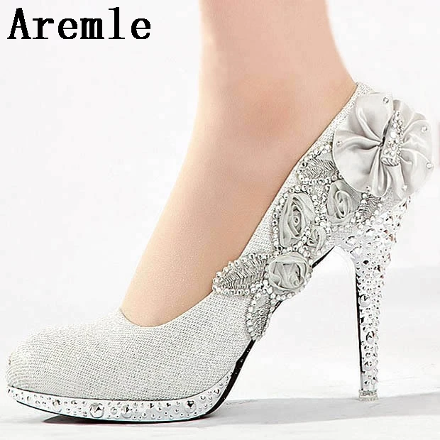 Silver Wedding Shoes Bride Shoes High Heel Rhinestone Party Shoes