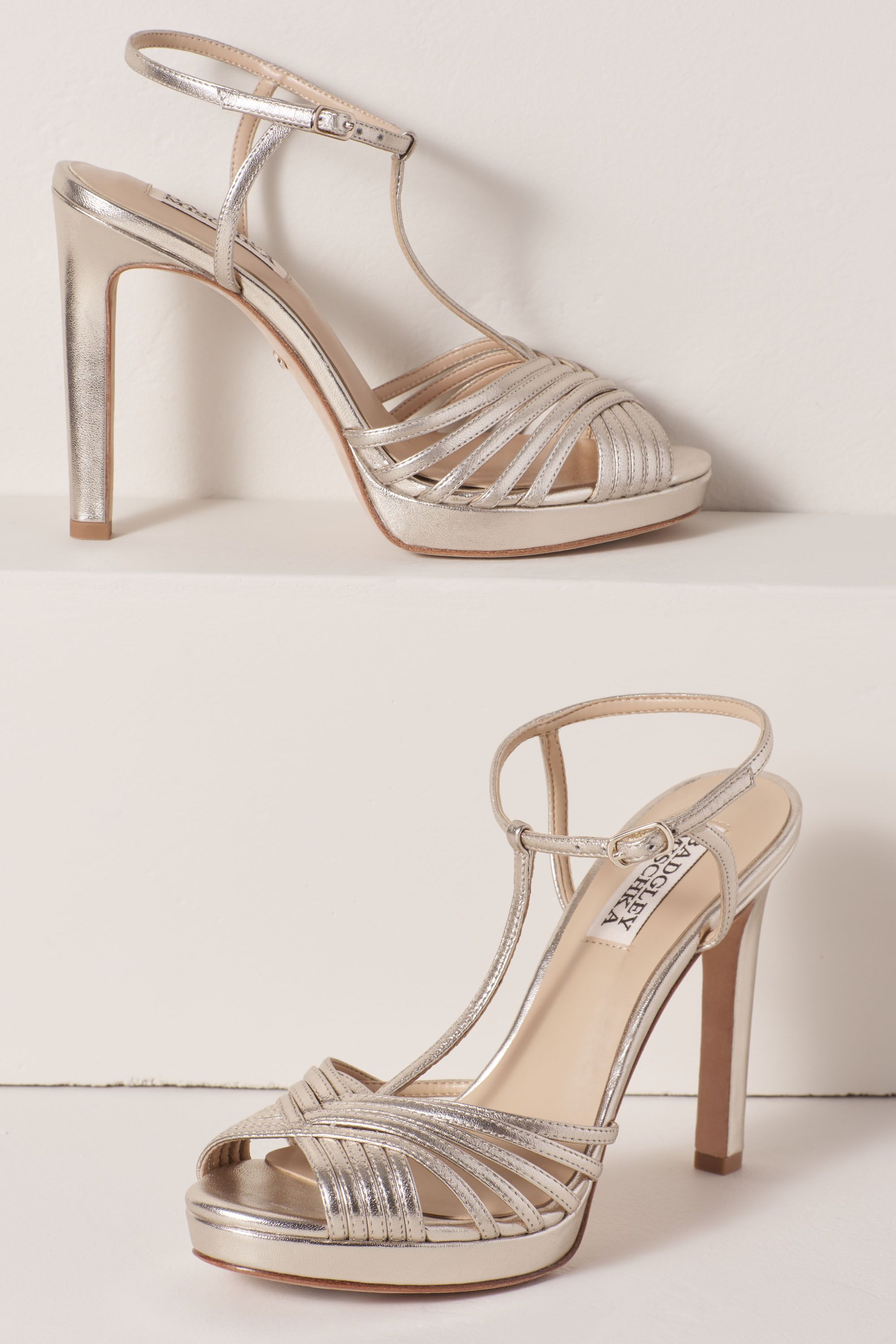 Wedding Shoes 2017 Silver Leather Glitter Strappy Stiletto Heels