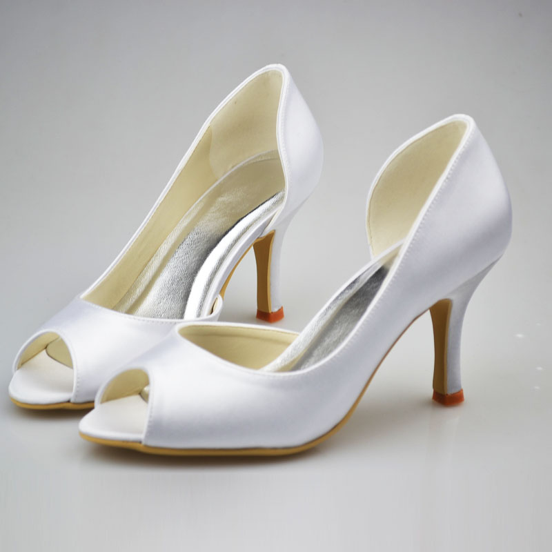 Latest Women S Satin Stiletto Heel Peep Toe Platform White Wedding