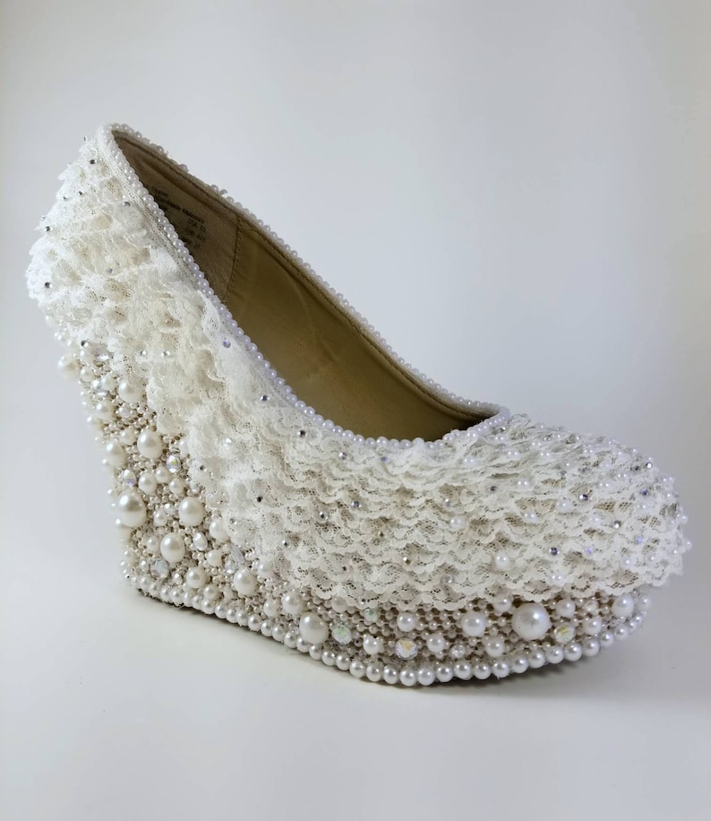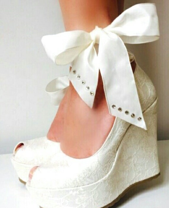 Wedge Wedding Shoes Wedge Bridal Shoes Lace Favour