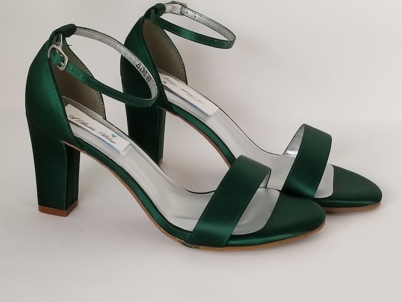 Hunter Green Wedding Shoes Chunky Heels Hunter Green Bridal Etsy