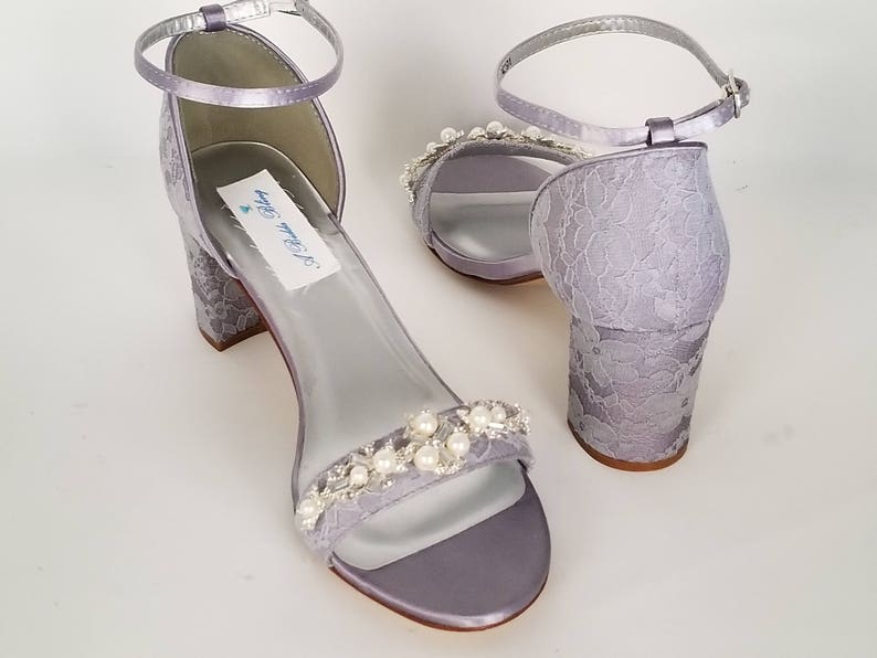 Purple Wedding Shoes Chunky Heels Purple Bridal Shoes Lace Etsy