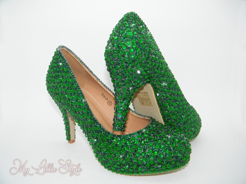 Emerald Dark Green Mid Rhinestone Heels Wedding Shoes Etsy