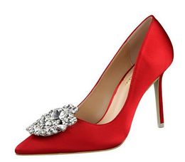 Satin Kmeioo Shoes Women Wedding Pumps Elegant Crystal Pumps Square