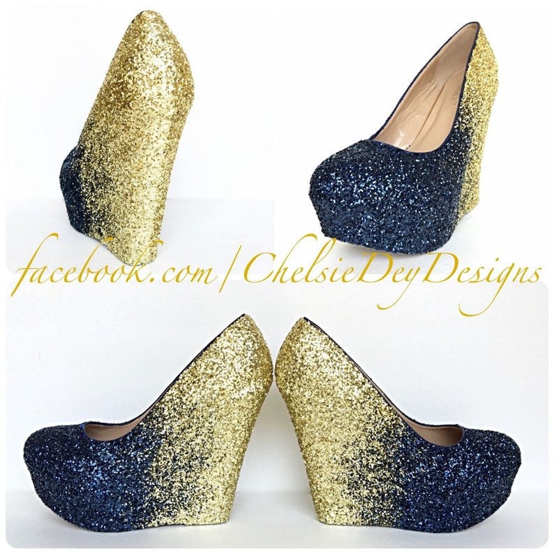 Navy Blue Wedge Glitter Heels Dark Blue Gold Platform Shoes Etsy