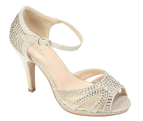 New Womens Glitter Diamante Ladies Mid Platform Bridal Prom Wedding