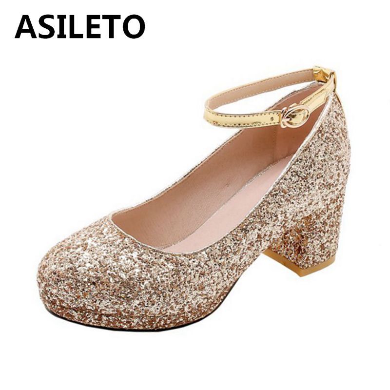 2019 Asileto Women Pumps Platform Wedding Shoes Sequin Glitter