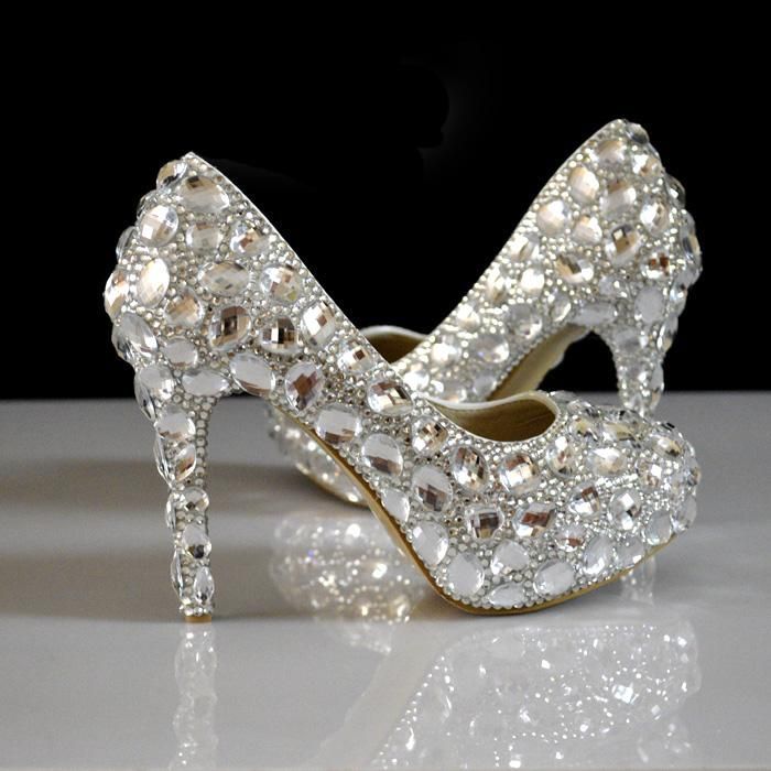 Silver Rhinestones Wedding Shoes For Bride Bridal Pumps 14cm 11cm