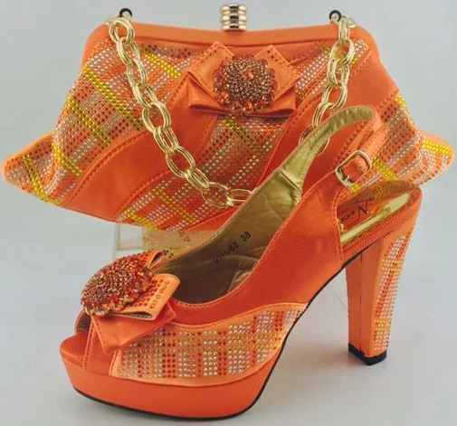 New Arrival Orange Color Italian Shoes With Matching Bags For Women
