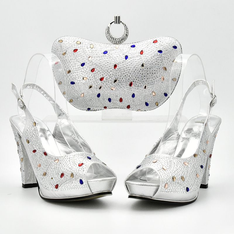 New Fashion Rhinestone Wedding Shoes Shoe And Bag For Nigeria Party