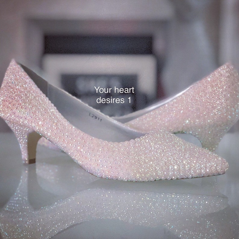 Wedding Shoes Bling Bridal Pumps Low Heel Pearl White Rainbow Etsy