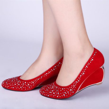 Cute Red Wedge Low Heel Wedding Evening Party Bridesmaid Shoes Sku