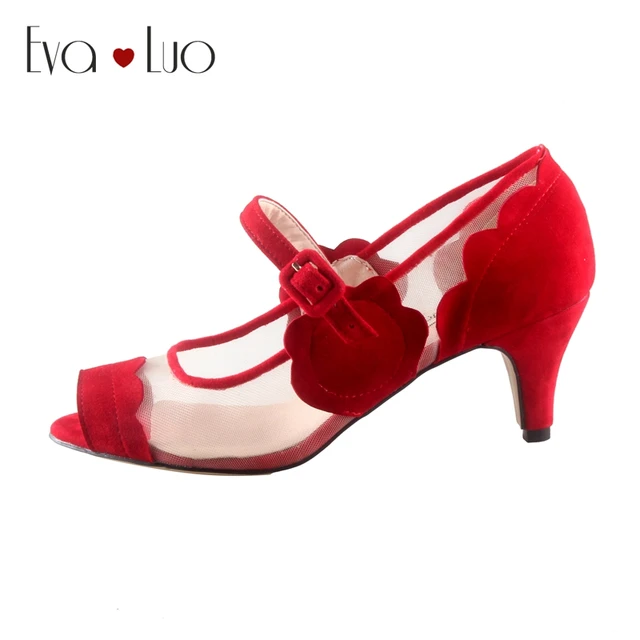 Us 116 0 Chs631 Custom Handmade Red Suede Dress Pumps Bridal Wedding Shoes Big Size Low Heel Peep Toe See Through Transparent Women Shoes In Women S