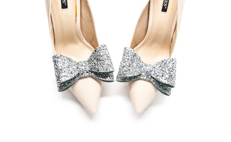 Silver Glitter Bows Shoe Clips Mififi Shoe Clips Wedding Shoe Etsy