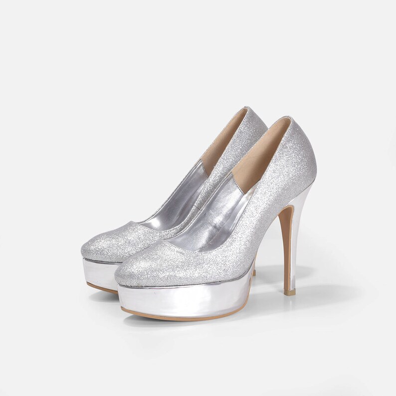 Brand Women Pumps 12cm High Heels Silver Glitter Wedding Shoes Woman