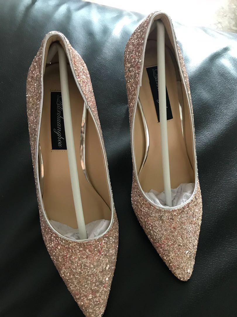 Size 36 Pink Silver Glitter Wedding Shoes Brand New Women S Fashion