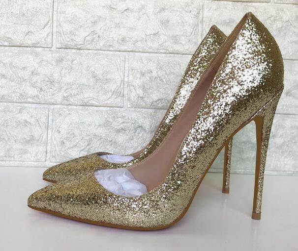 Shoezy Brand Wedding Shoes Gold Silver Glitter High Heels Women