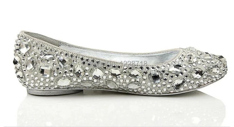 Silver Crystal Bling Bling Bride Flats Diamond Wedding Shoes