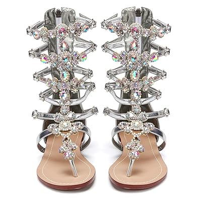 Amazon Com Azmodo Crystal Rhinestones Gladiator Sandals Silver