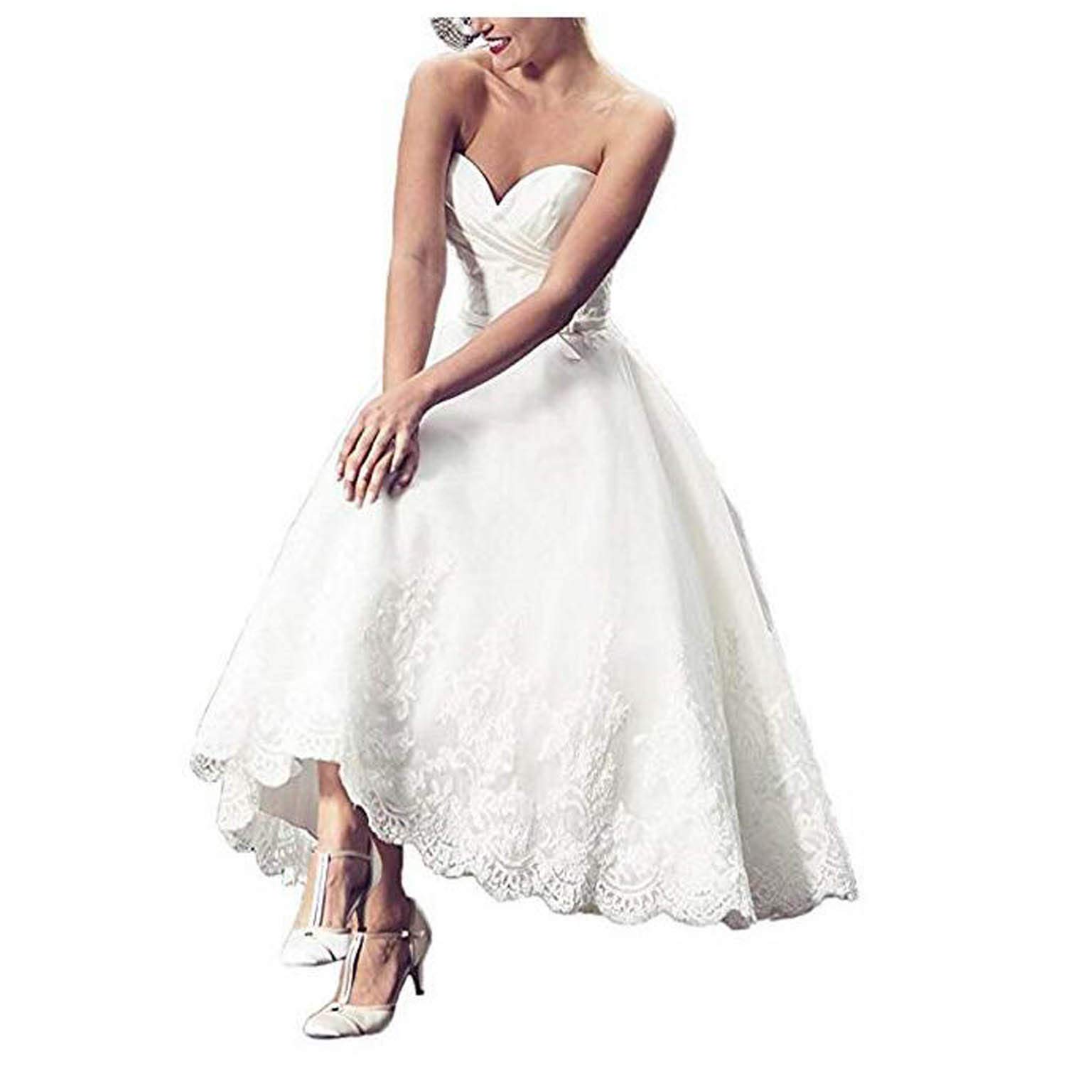 Elegant New White Ivory Lace Tea Length Sweetheart Wedding Dress