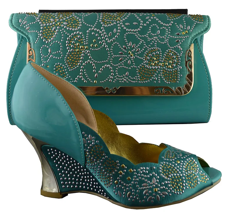 Teal Color Nigerian Party Shoe And Bag Sets Italian Shoes With