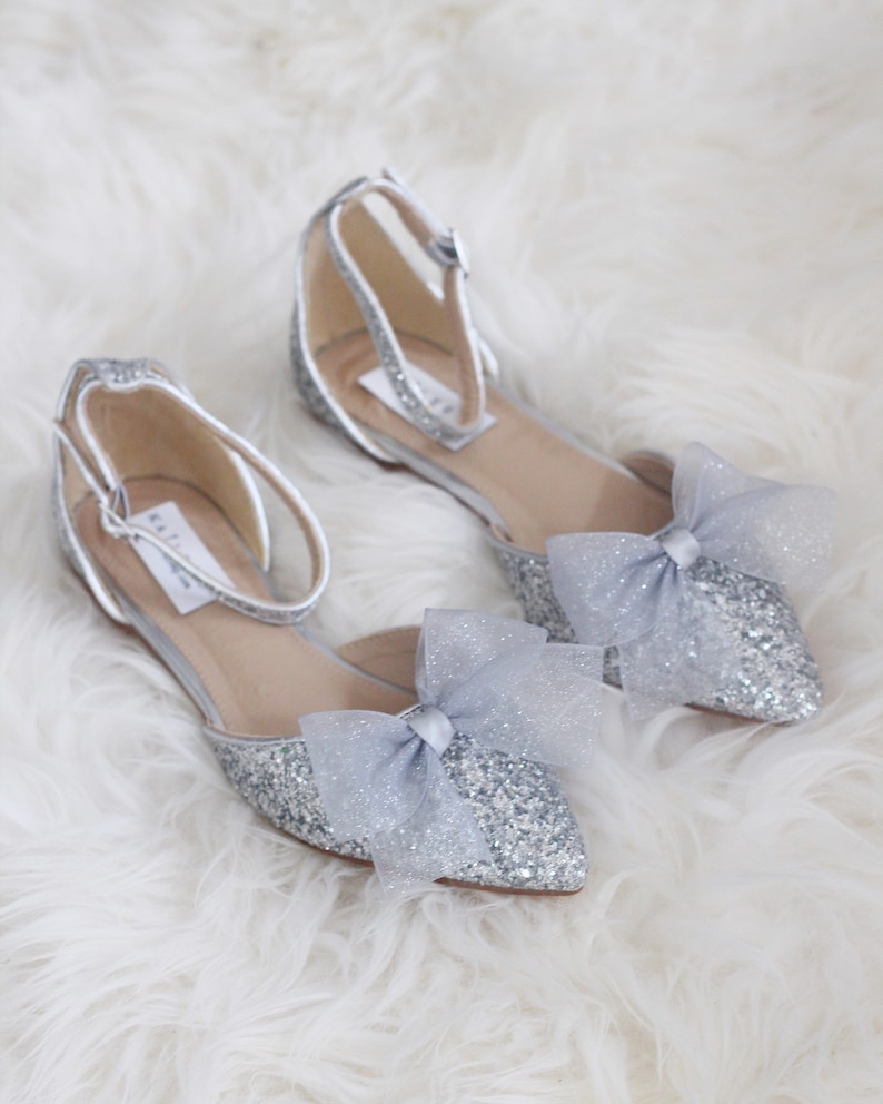 Bridesmaid Shoes Bridal Wedding Flats Rhinestones Bella Silver