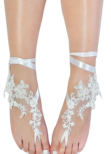 Amazon Com Romantic Lace Barefoot Sandals Bridal Wedding Shoes