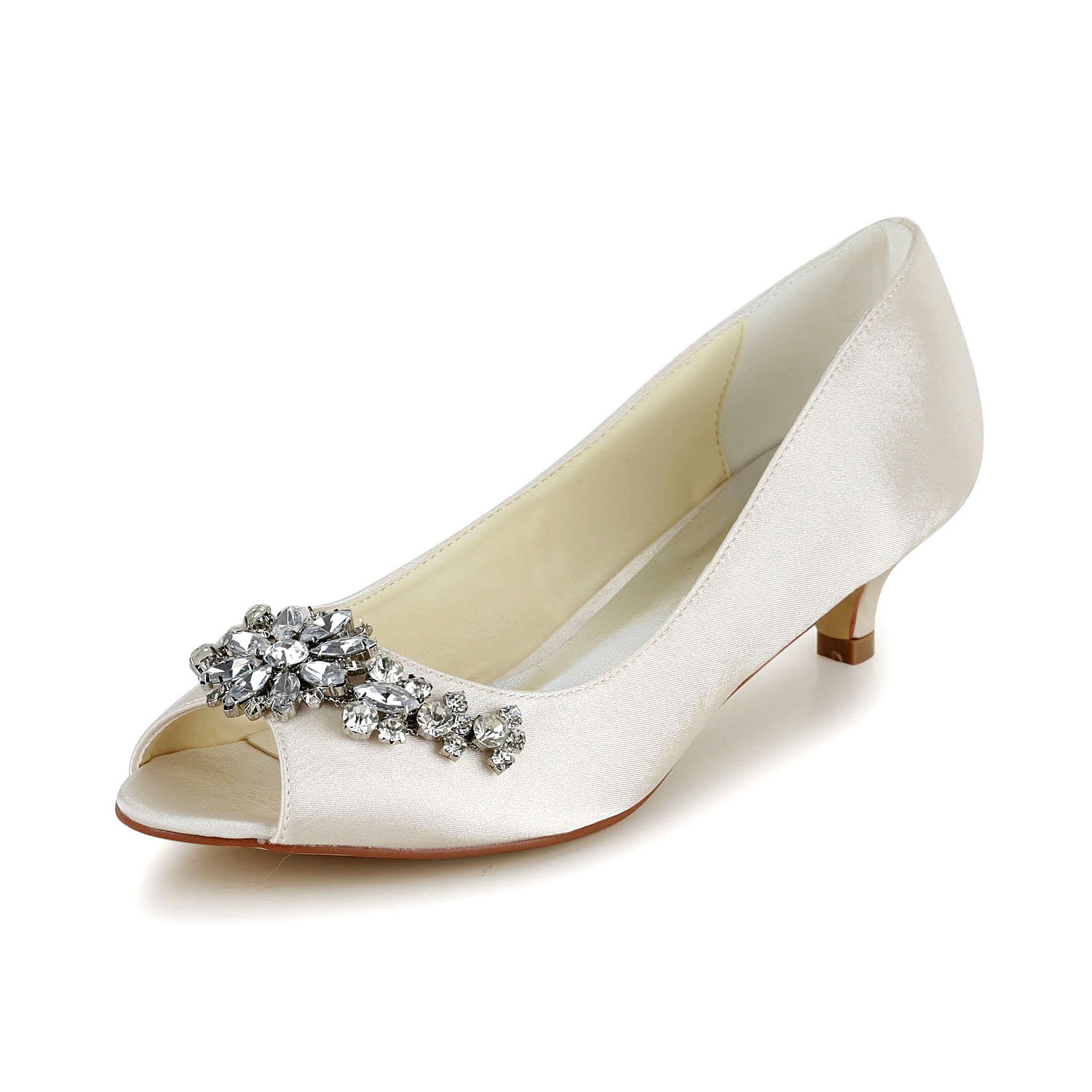 Jia Jia J01110 Women S Bridal Shoes Peep Toe Low Heel Satin Pumps