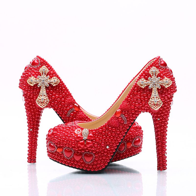 2017 Lady Red High Heels Bridal Wedding Party Shoes With Pearl And