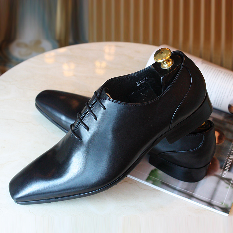 European Style Fashion Genuine Leather Pointed Oxford Shoes Black