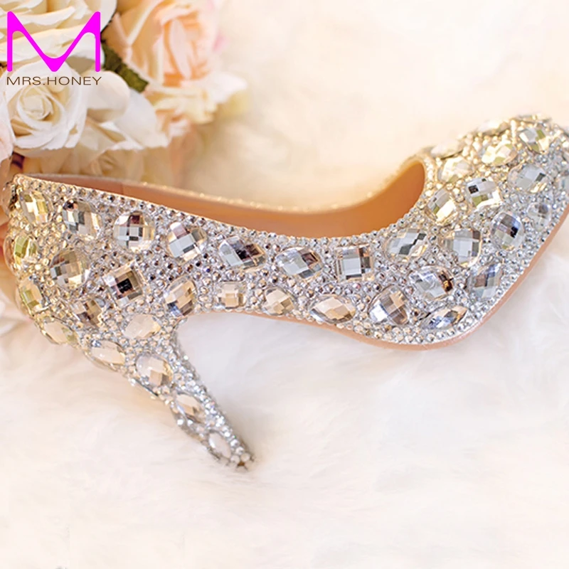 Popular Silver Closed Toe Bridal Shoes Wedding Shoes Clear