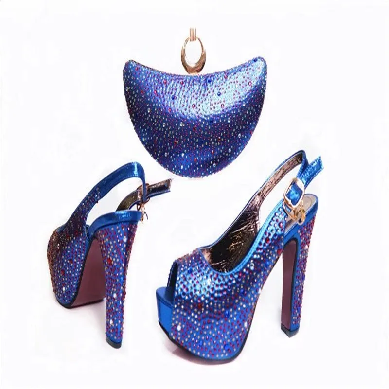 G37 Top Quality Luxury Rhinestone European Wedding Shoes And Bag Set