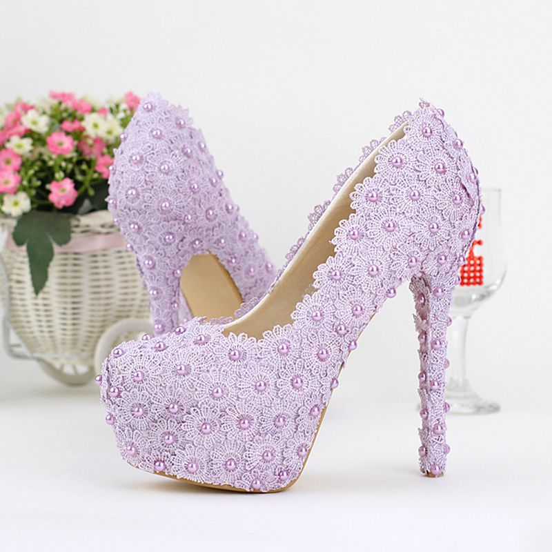 Purple Color Wedding Shoes Lady Beautiful Elegant Bridal Dress Shoes