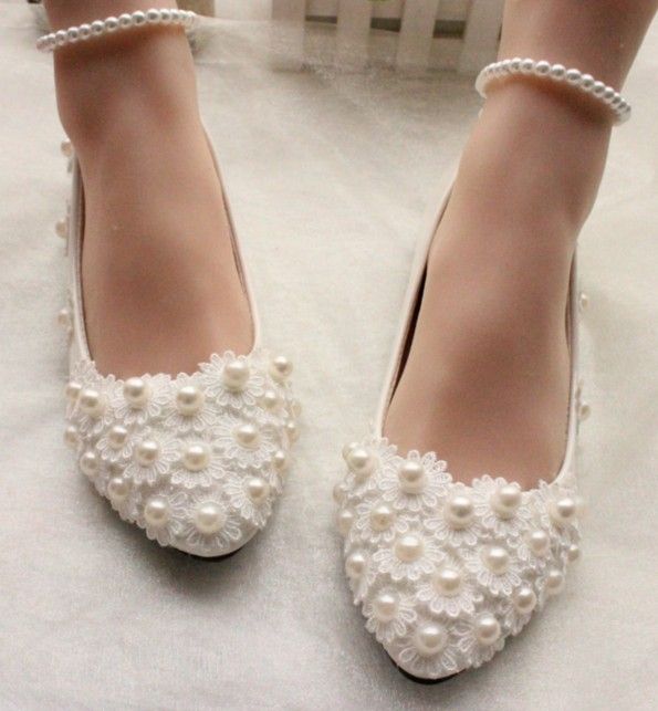 Newest Style Lace Pearl Flat Dress Shoes Princess Fashion Shoes